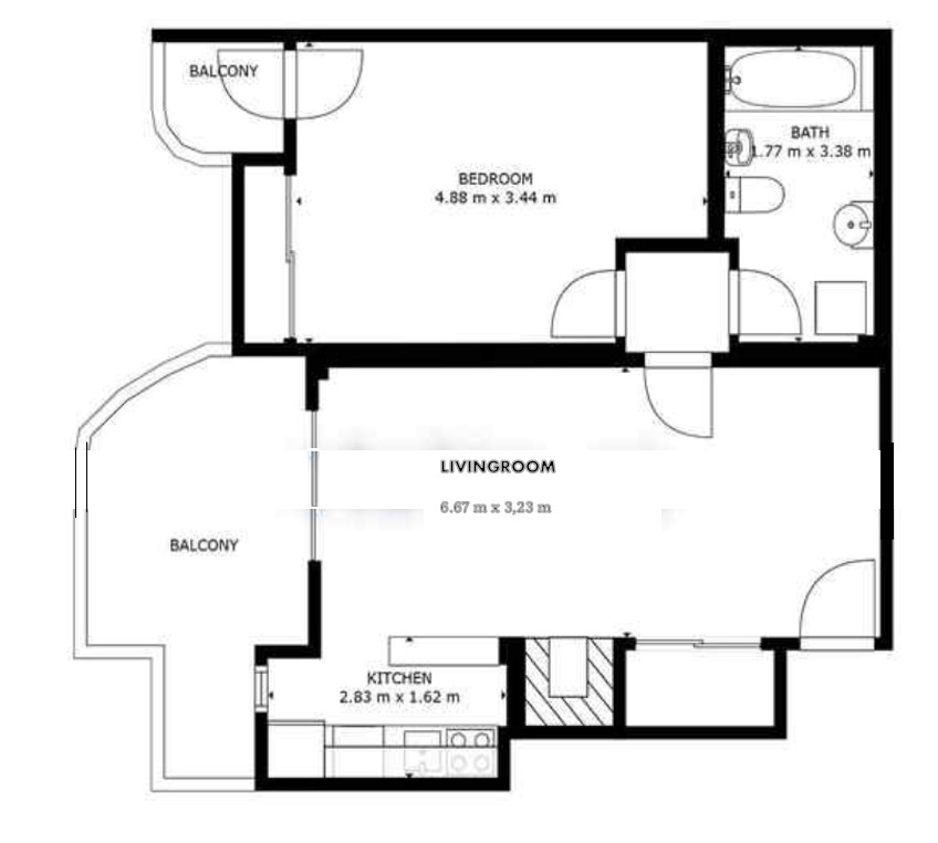 The apartment has approximately 55 m² of living space, intelligently distributed to maximize space and functionality. Upon entering, you will be greeted by a large, bright living room that provides a warm and inviting atmosphere. Natural light flows abundantly through the windows, creating a pleasant atmosphere throughout the day.