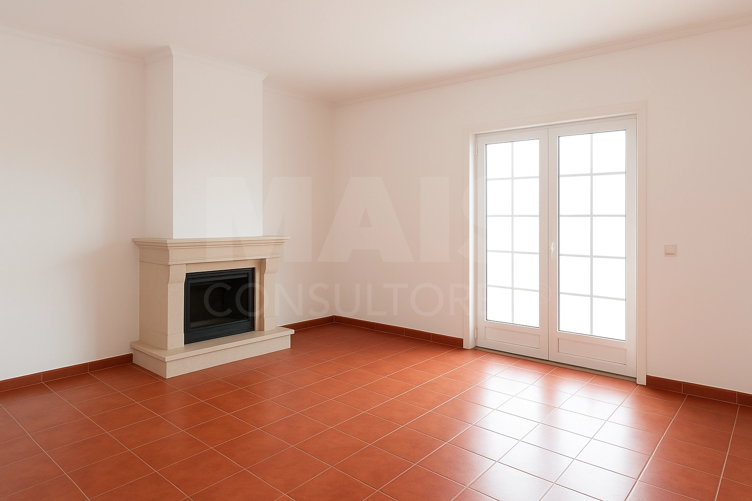 * Large, very bright living room with access to a balcony and large fireplace.